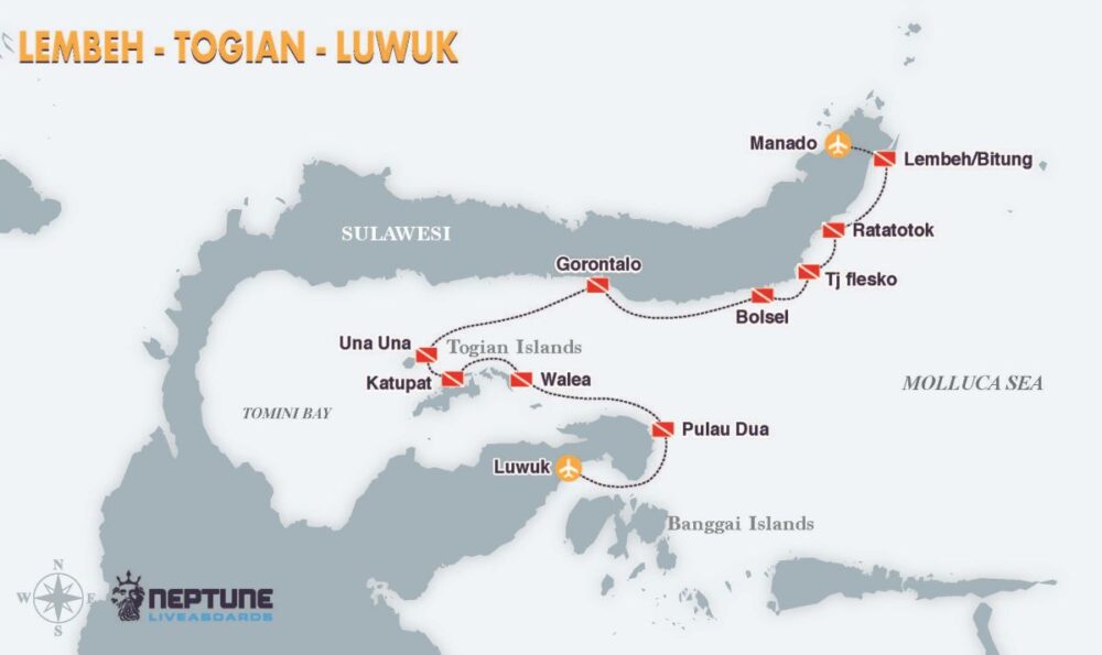 King Neptune proposes novel diving itineraries, such as Wakatobi-Alor or Lembeh-Togian-Luwuk, plus the legendary routes of Raja Ampat, Halmahera, and the Banda Sea, for only 22 fortunate scuba divers on exceptional liveaboard diving expeditions across the Indonesian archipelago. Book now and get our 20% off special launching offer in all the dive cruises of King Neptune.